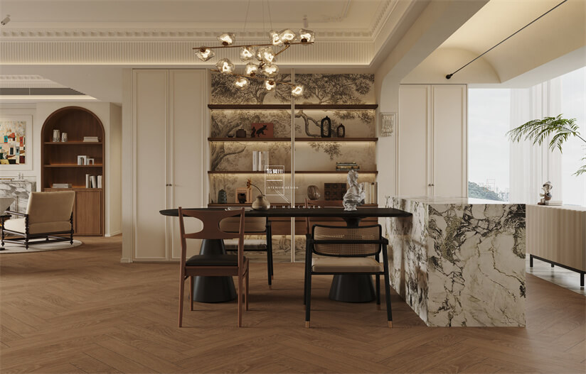 团队配合,以项目为先,共同完成设计、施工、定制、选材环节,节点把控进度,落地准确